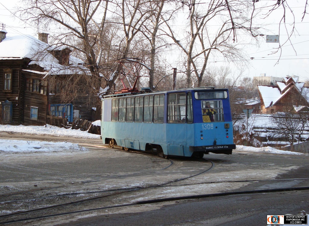 | Трамвай ЛМ-93 №1308, маршрут №2, город Казань, конечная станция "Строительный институт", Татарстан Автор: 7047 | Фото сделано 8.II.2009, опубликовано 30.III.2011.