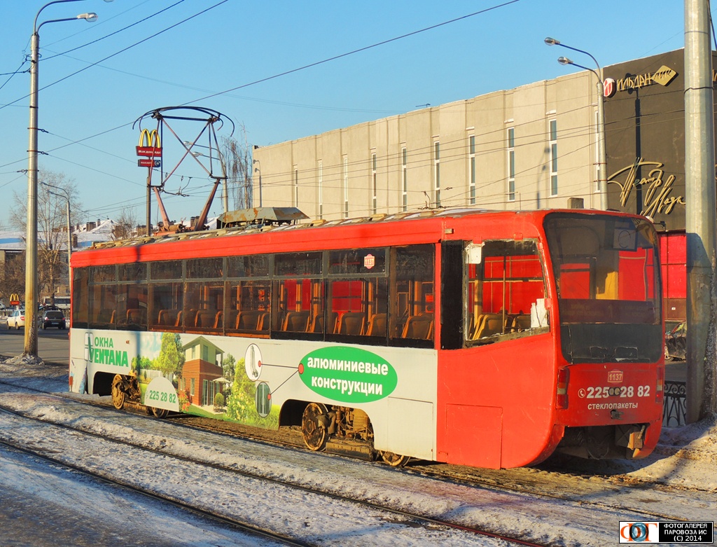 | Трамвай 71-619К-01, №1137, маршрут №1, кольцо "Железнодорожный вокзал", г. Казань, Татарстан Автор: Алексей | Фото сделано 1.II.2014, опубликовано 7.II.2014.
