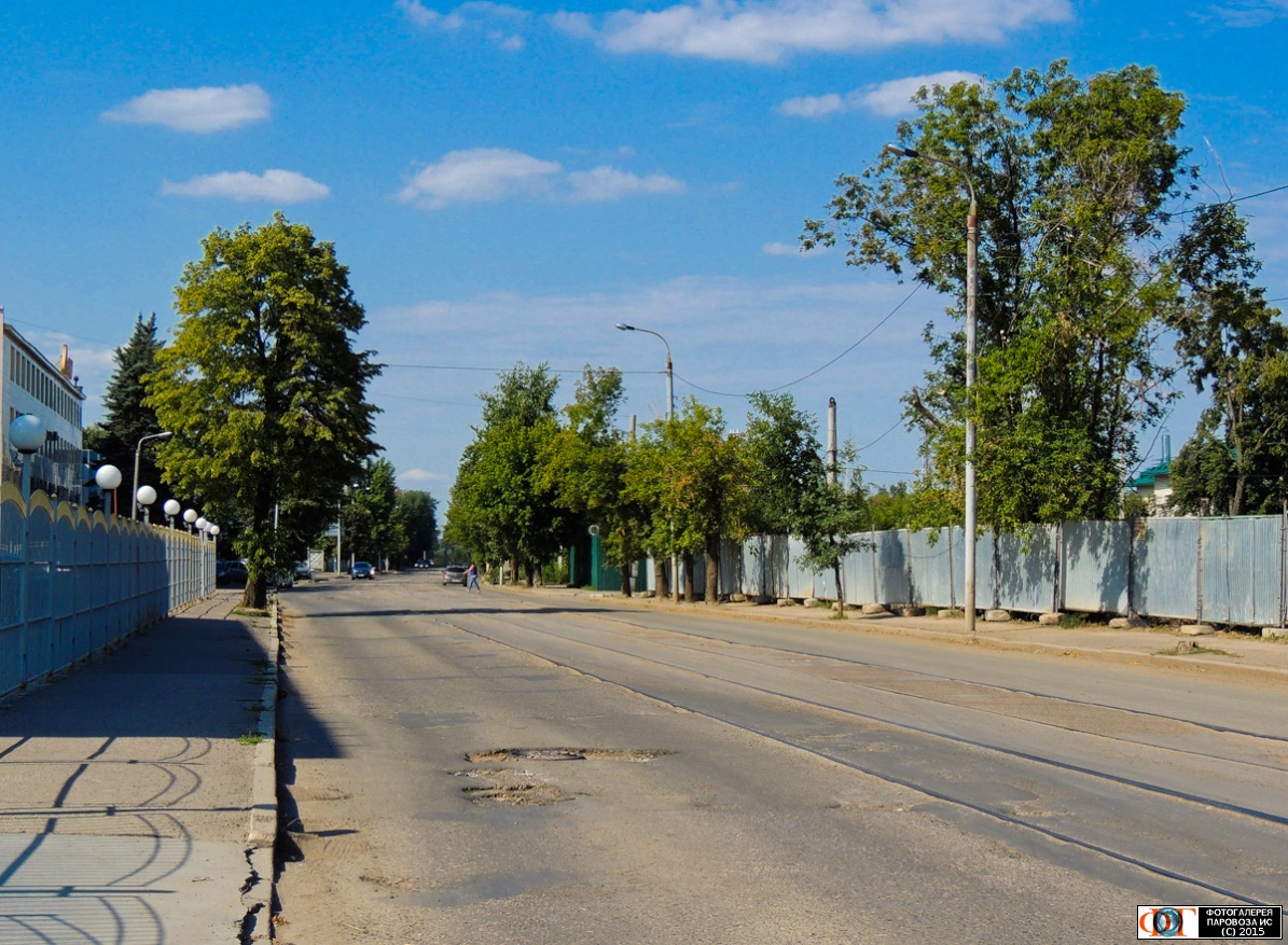 | Закрытая трамвайная линия на улице Мазита Гафури, г. Казань, Татарстан Автор: Иван | Фото сделано 28.VII.2015, опубликовано 18.XI.2015.