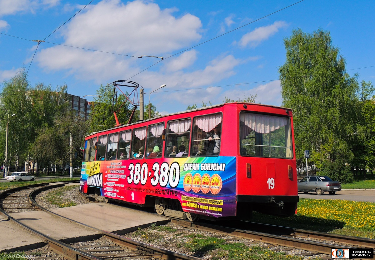 | Трамвайная 71-605 №19, маршрут 6, проспект Строителей / проспект Химиков, г. Нижнекамск, Татарстан Автор: Иван | Фото сделано 8.V.2016, опубликовано 14.VIII.2016.