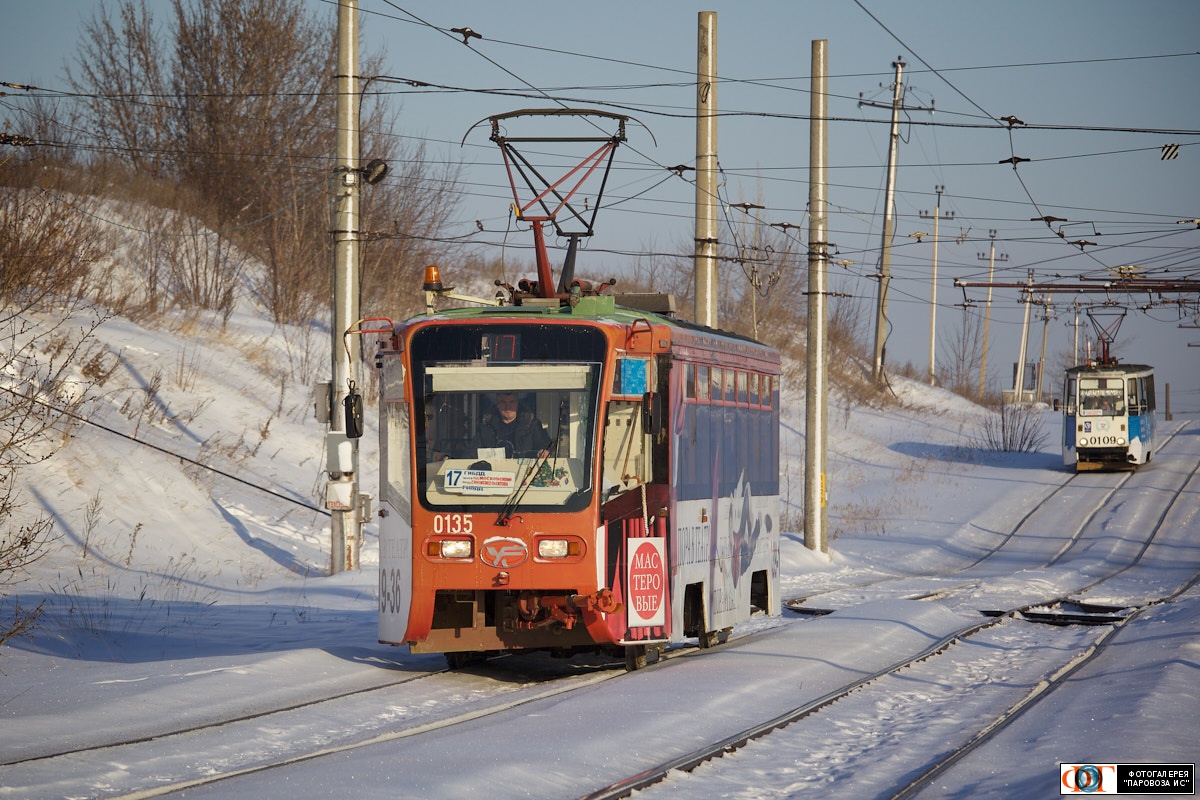| Трамвай 71-619КТ № 0135, узел Хасан Туфана, г. Набережные Челны, Татарстан Автор: Александр Белоусов | Фото сделано 9.I.2015, опубликовано 23.IV.2018.