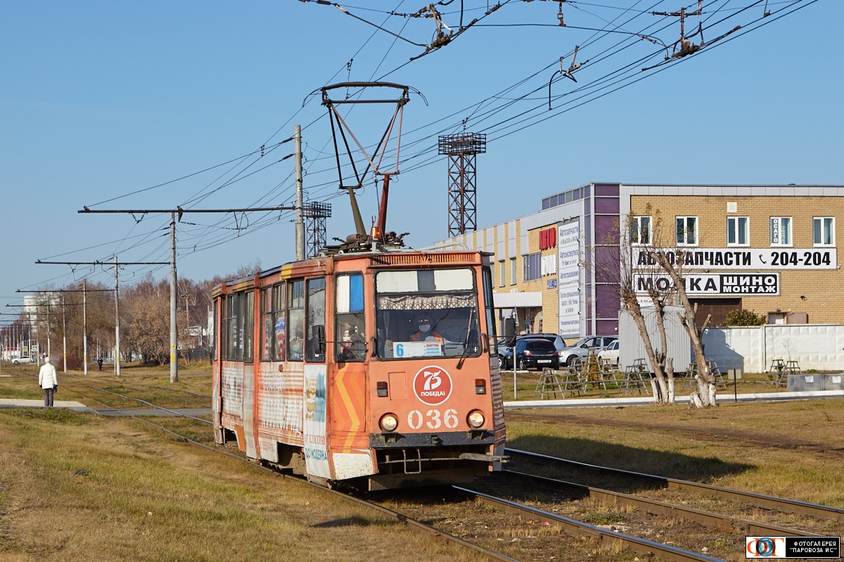| Трамвай 71-605 № 036, улица Р. Беляева, г. Набережные Челны, Татарстан Автор: Александр Белоусов | Фото сделано 29.X.2020, опубликовано 24.XII.2020.