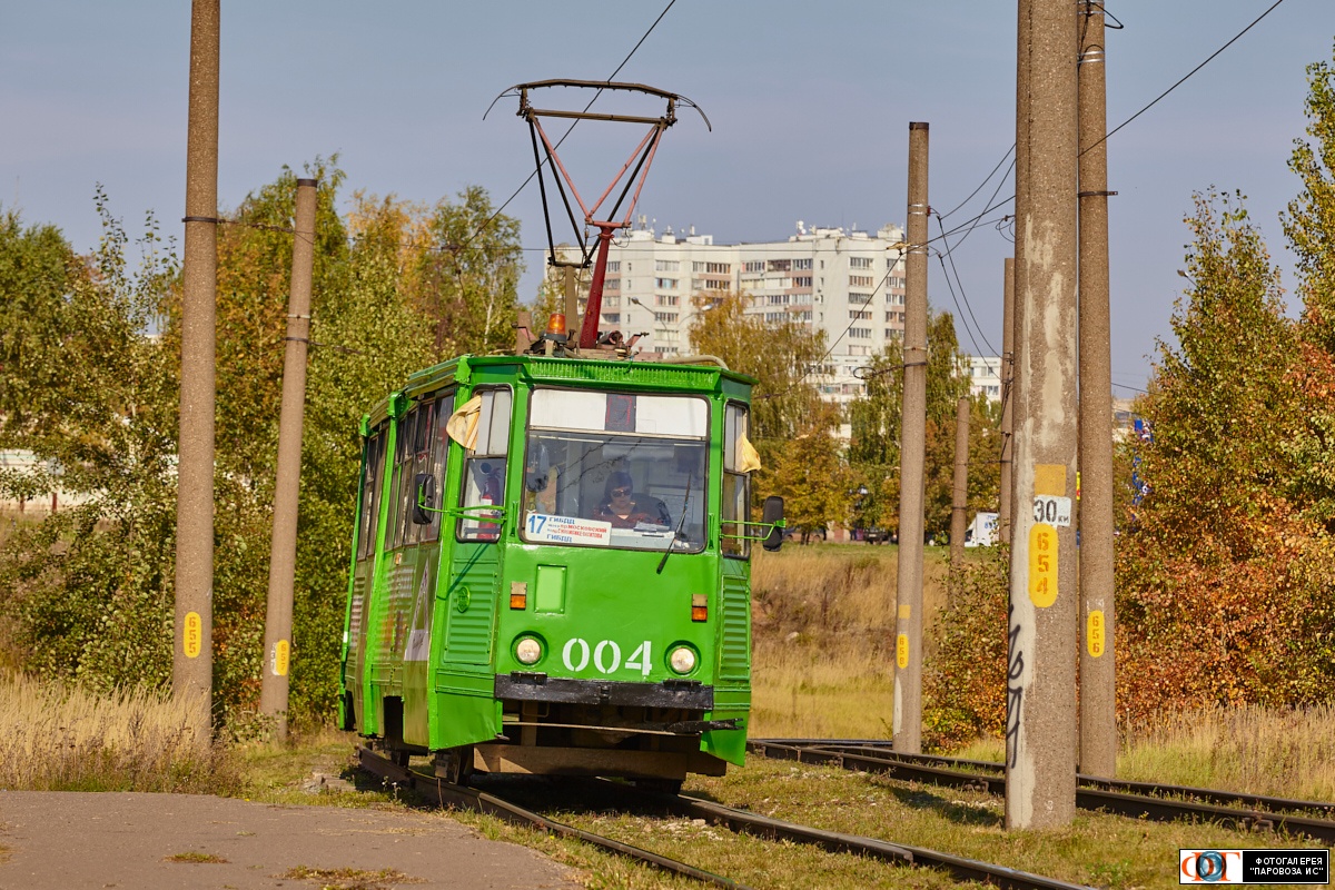 | Трамвай 71-605 № 004, узел Хасан Туфана, Набережные Челны, Татарстан Автор: Александр Белоусов | Фото сделано 24.IX.2015, опубликовано 25.III.2022.