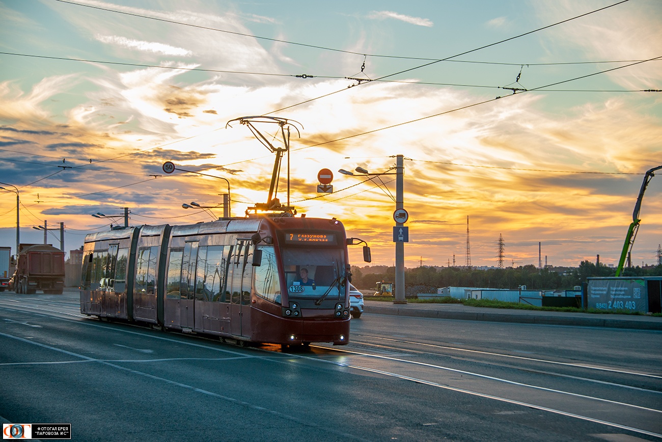 | Трамвай 84300М №1308, Кировская дамба, г. Казань, Татарстан Автор: Огнев О. В. | Фото сделано 25.VII.2024, опубликовано 7.VIII.2024.
