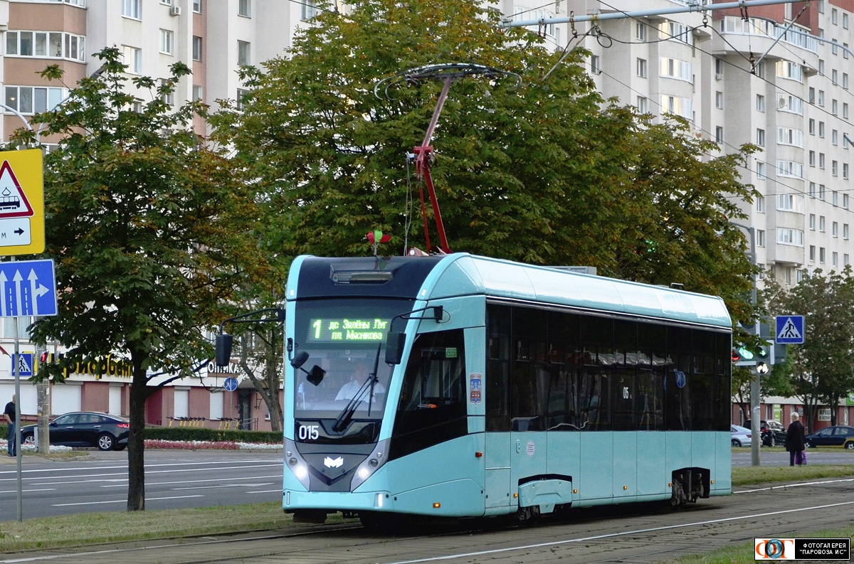 | Трамвай БКМ Т811 №015, маршрут №1, Логойский тракт, Минск Автор: sanya | Фото сделано 13.IX.2025, опубликовано 5.XI.2025.